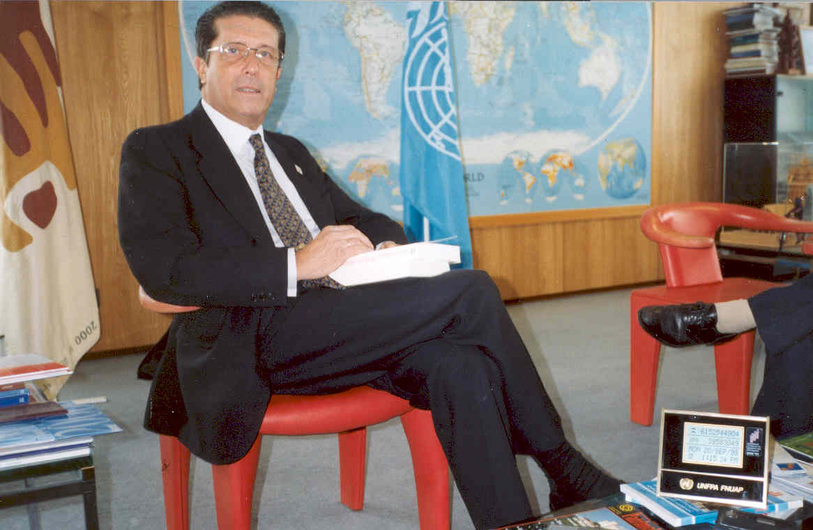 Al lado de D. Federico Mayor (en la parte inferior derecha de la foto), aparece el reloj que va midiendo